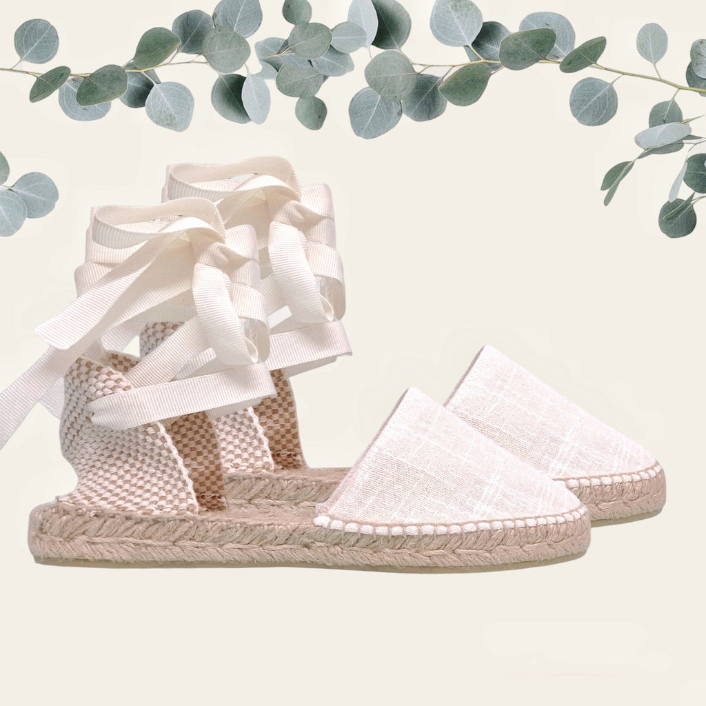 Alpargatas planas de lino con cintas dobles