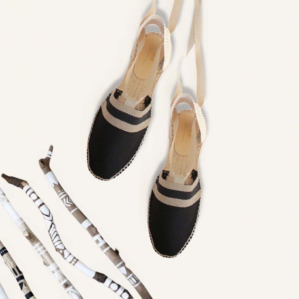 Cintas que envuelven con elegancia los tobillos para una optima sujeción.
