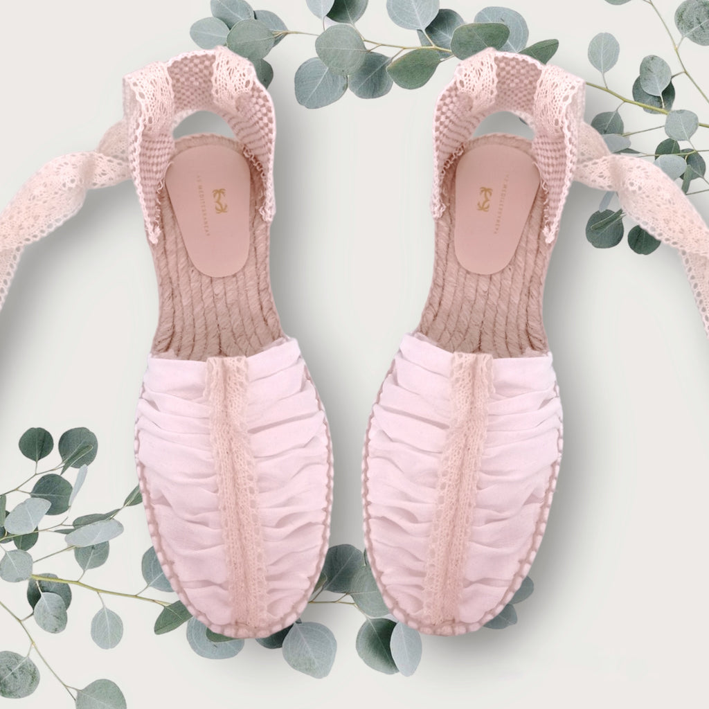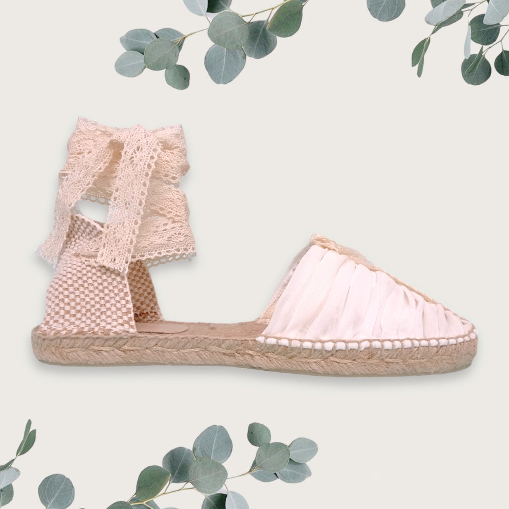 Las cintas de encaje en la parte superior de las alpargatas son un hermoso detalle que añade un toque de encanto y romanticismo.