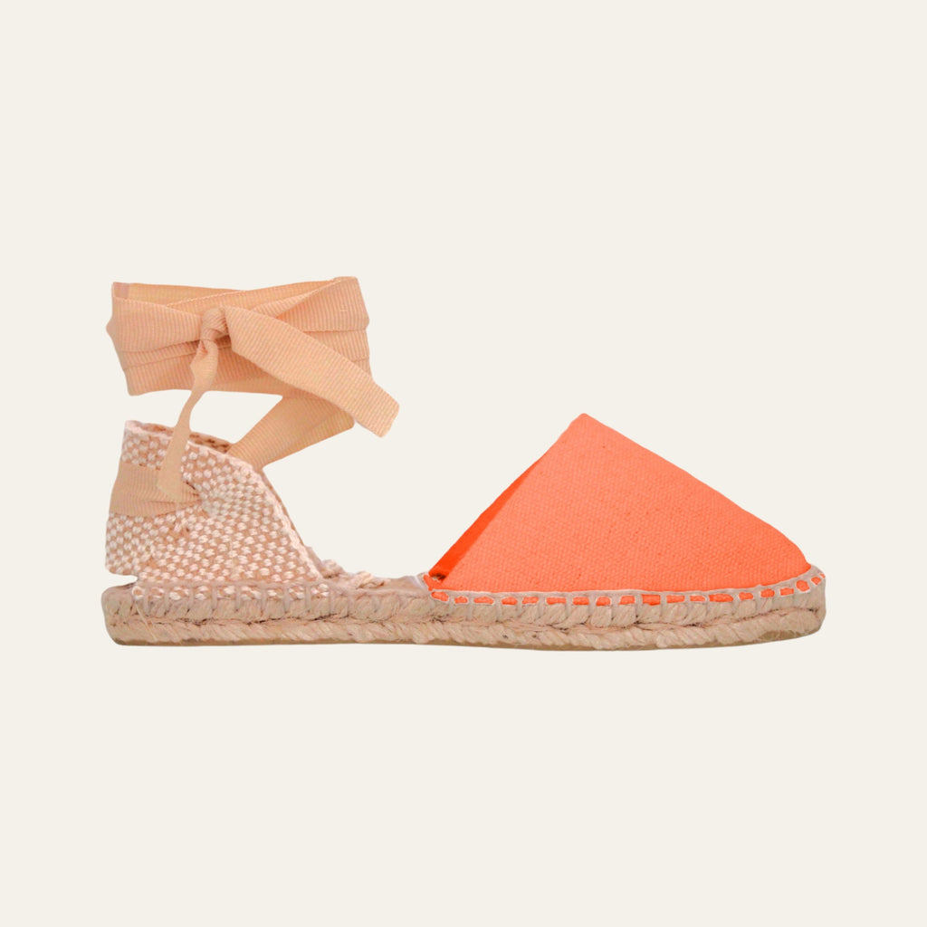 Elaboradas en lona color orange blush con 2 pares de cintas Ivory y Sand para que las puedas intercambiar.