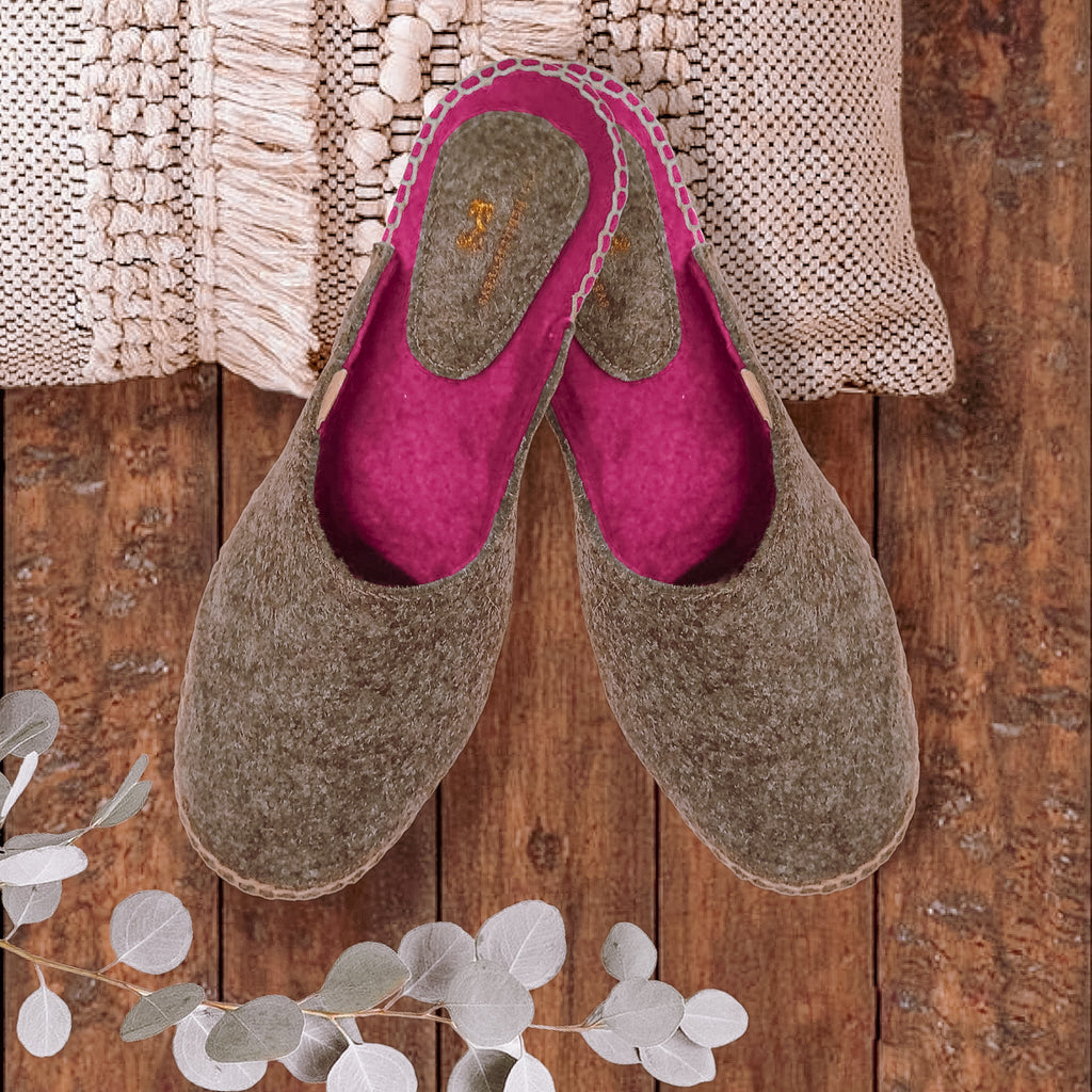 Zapatillas de casa elaboradas cuidadosamente de lana orgánica con certificado OEKO TEX libre de sustancias tóxicas.